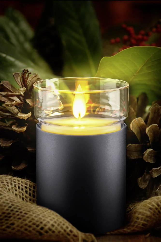 LED svijeća od pravog voska, crne boje, toplo bijela (promjer x V) 80 mm x 120 mm Polarlite