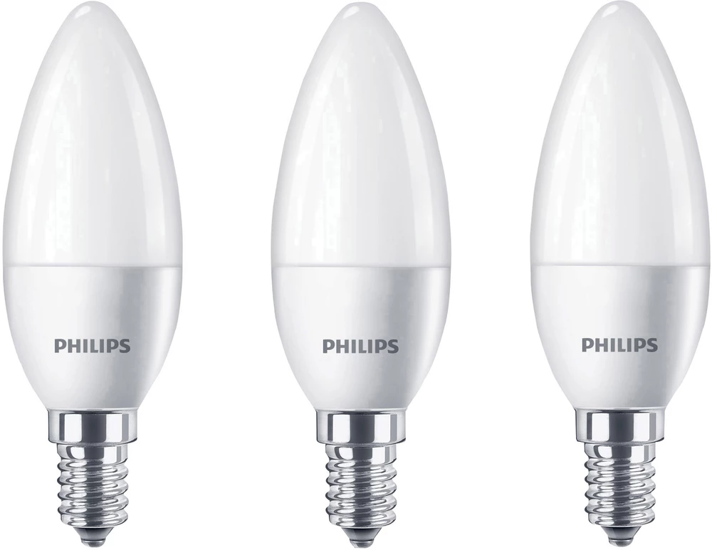 - LED žarulja E14 oblik svijeće 5.5 W = 40 W topla bijela (promjer x D) 35 mm x 104 mm KEU: A+ Philips Lighting 3 kom.
