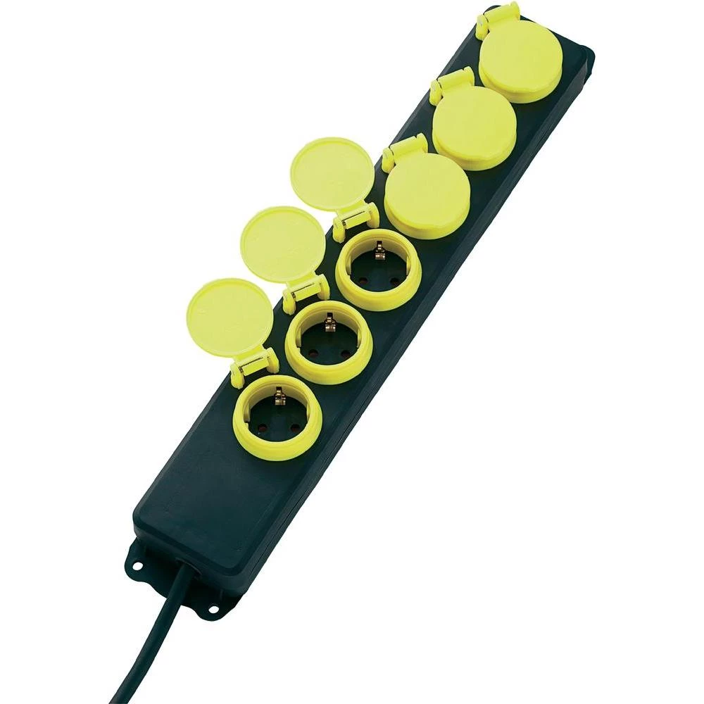 Letva s utičnicama bez prekidača 6-struka crna, žuta sa zaštitnim kontaktom Conr