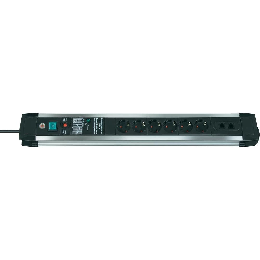 Letva s utičnicama i zaštitom od prenapona 6-struka, crna, aluminij, zaštitni ko