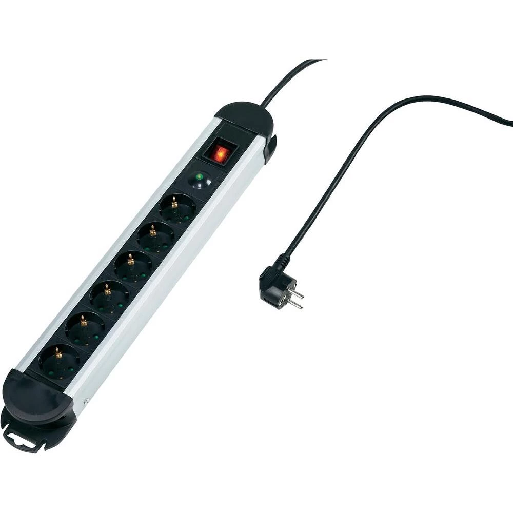 Letva s utičnicama i zaštitom od prenapona 6-struka, crna, zaštitni kontakt, CE