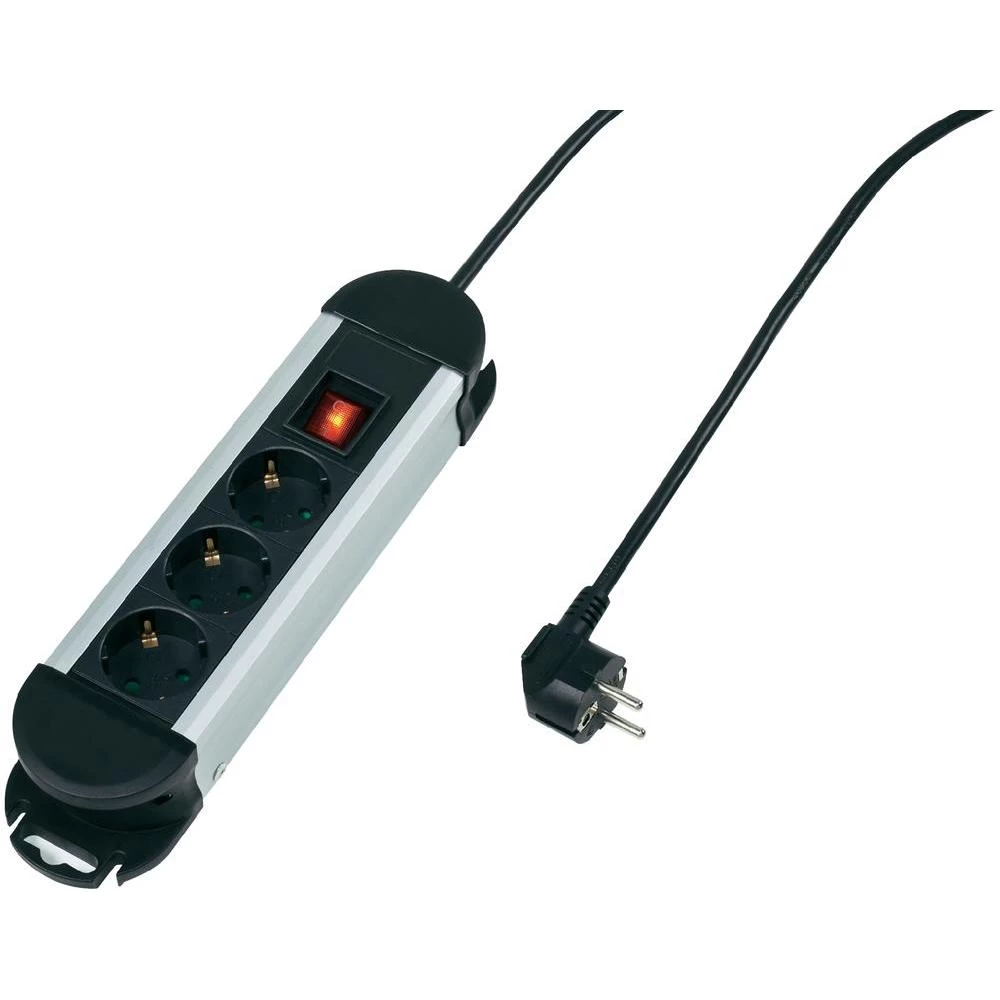 Letva s utičnicama s prekidačem 3-struka crno-srebrna sa zaštitnim kontaktom Con
