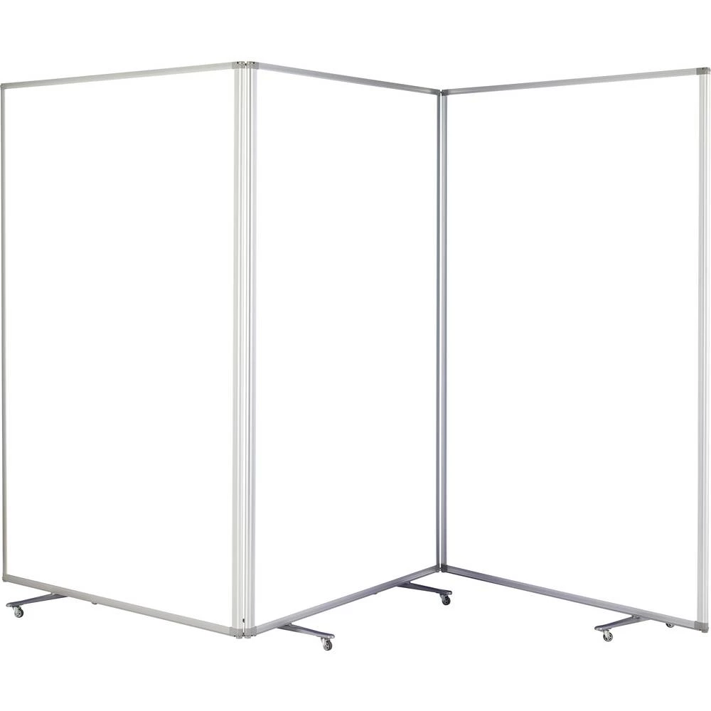 Mobilna particija za odvajanje pojedinačno prikazanih soba s poluprozirnim zaslonima za privatnost. Kutovi za sastanke, radna područja itd. Mogu se stvoriti ili strukturirati brzo i jednostavno. S tri čvrsto povezana, posebno prozirna elementa izrađena od mat polikarbonata (debljine 7,5 mm). Zahvaljujući stabilnom aluminijskom okviru, može se postaviti lako i fleksibilno poput zaslona. Mobilni zahvaljujući rotirajućim nogama s 8 kotačića. Zid se može potpuno spojiti i tako se može pohraniti na način koji štedi prostor. Ukupna veličina uključujući valjke: 3610 x 1800 x 370 mm (Š x V x D). Preklopljena veličina uključujući valjke: 1200 x 1800 x 400 mm (Š x V x D). Težina: 15,4 kg.