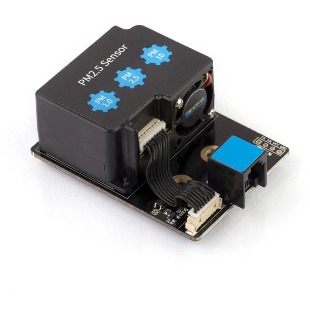 PM2.5 senzor koristi teoriju laserskog raspršivanja kako bi zabilježio atmosferski PM2.5. Karakterizira ga precizna detekcija, brz odziv i stabilan rad uz minimalne pogreške. Senzor može otkriti raspon od PM1.0 do PM10. PM2.5 se odnosi na atmosferske čestice promjera najviše 2,5 mikrometara. Što duže lebdi u zraku, veća je i njegova koncentracija, što predstavlja sve veći stupanj onečišćenja zraka i štete ljudskom zdravlju. Ovo sučelje modula je plave boje, što znači da dvostruko digitalno sučelje mora biti povezano s plavim sučeljem na glavnoj ploči.