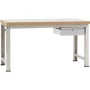 Uštedite si dugog traženja i mukotrpne montaže pojedinih dijelova radnog stola, iskoristite naše iskustvo! S PROFI radnim stolom u provjerenom i jeftinom asortimanu koji su sastavili naši stručnjaci, stvarate optimalnu osnovu za radno područje. PROFI radni stol može se koristiti kao pojedinačni ili kao serijski radni stol. Ovdje će svoje mjesto naći posebno rad s velikim mehaničkim naprezanjima, ali također se pomoću PROFI radnog stola mogu izvesti potpuno opremljene radne stanice za proizvodnju ili montažu zahvaljujući širokom rasponu dodatne opreme. PROFI Standardni radni stol od aluminijskog srebra sličan RAL 9006, širok 1500 mm i dubok 700 mm izuzetno je stabilan i izdržljiv zahvaljujući samonosećem čeličnom okviru. Visina je 800 mm plus radna ploča. Zbog vrlo velike nosivosti od 1800 kg (s ravnomjernom raspodjelom tereta), radni stol je idealno pogodan za velika mehanička opterećenja u proizvodnji ili montaži. Samonosivi okvir sastoji se od 2 okvira od čeličnog profila 60 x 60 mm i 2 stabilna okvira visine 60 mm, kao i gumene cipele (6 mm) za zaštitu podne obloge. Okvir je visokokvalitetno praškasto presvučen aluminijskim srebrom sličan RAL 9006. Svjetlosiva plastična ploča radnog stola, debljine 40 mm, širine 1500 mm i dubine 700 mm, sastoji se od melaminskih laminata koji se lako održavaju na 3-slojnoj iverici E1 (emisijska klasa 1) s protutežom. Nadalje, plastična ploča radnog stola obrubljena je svijetlosivim plastičnim rubom otpornim na udarce u multiplex dekoru. Površina se lako čisti. I dalje je otporan na habanje i ogrebotine, izdržljiv i bez odsjaja. Ploča radnog stola pogodna je za montažu, otpremu i laboratorijske radove te za rad bez većih zahtjeva za kemijskom otpornošću. Jedna ladica uključena je u opseg isporuke, što osigurava optimalno skladištenje vašeg alata i sitnih dijelova izravno na radnom mjestu. Zahvaljujući ojačanom čeličnom dizajnu, pojedinačna ladica je izuzetno stabilna i bez uvijanja. Ladica je na valjkastim ležajevima i može se izvući do 60%. Ima veliku, crnu, praktičnu traku za držanje s naljepnicom i prozirnim poklopcem. Nosivost pojedinačne ladice je 25 kg. Pojedinačna ladica ima širinu od 425 mm, dubinu od 550 mm i visinu ploče od 135 mm. Izrađen je od čelika i perforiran u rešetku od 36 mm. Ladica je visokokvalitetna u prahu presvučena aluminijskim srebrom slično RAL 9006.