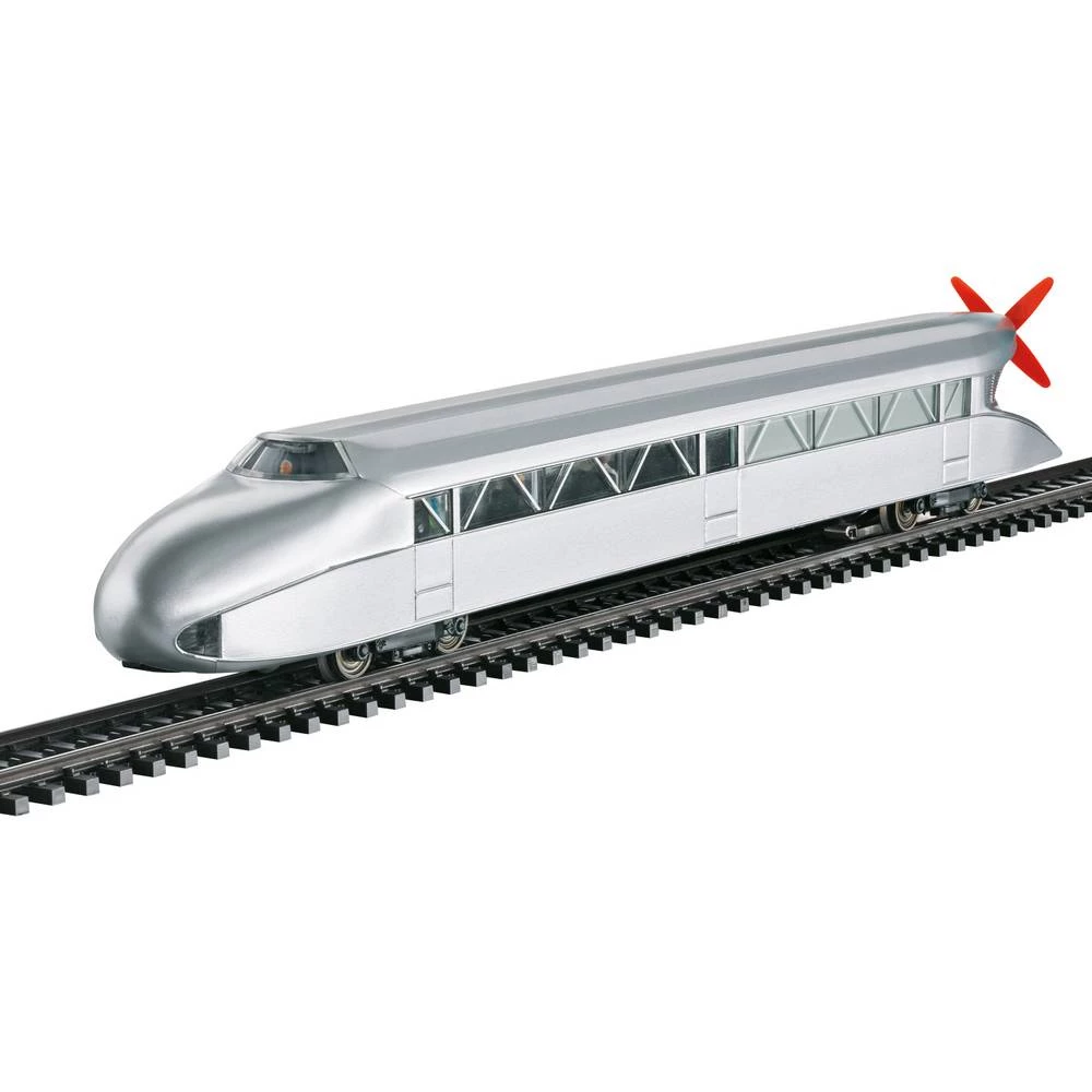 Model: Ovo je ponovno izdanje klasika Märklin. S digitalnim dekoderom mfx s opsežnim zvučnim funkcijama. Kontrolirani pogon visoke učinkovitosti. 2 osovine s pogonom Vučne gume. Dvostruka svjetla i crveno svjetlo za zamjenu mijenjaju se u smjeru vožnje, radit će u uobičajenom pogonu i mogu se digitalno upravljati. Standardna ugrađena unutarnja rasvjeta, uobičajeni rad, može se zasebno kontrolirati u digitalnom radu. Osvjetljenjem kabine može se zasebno digitalno upravljati. Rasvjeta toplim bijelim i crvenim diodama koje emitiraju svjetlo (LED). Stražnjim propelerom se može zasebno upravljati u digitalnom pogonu i radit će u uobičajenom radu. Pri manevriranju i vožnji unatrag čuje se električni motor, propeler je isključen. Lik vozača motora u vozačkoj kabini. Unutarnja oprema s minijaturnim likovima putnika, duljina vozila oko 28,5 cm.