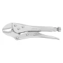 Kliješta za prizme. S ravnom čeljusti i čeljusti s udubljenjem prizme. S rezačem za žice. Idealno za okrugli i ravni materijal. Visok pritisak stezanja uslijed prijenosa poluge koljena. Operacija s jednom rukom. Ručica s brzim otpuštanjem i podešavanjem vijaka. Kovani, temperirani obrazi. Ručica za brzo otpuštanje s povratnom oprugom.