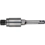 SDS-Plus drška, 118 mm, s vanjskim navojem M 16 za univerzalne pile za rupe "" Pionier ". Prikladno pričvršćivanje za brzo otpuštanje za brzu promjenu središnje bušilice, bez vijka za zaključavanje. Nema gubitka alata ako se slučajno uključi čekićni mehanizam: Skraćeni žljebovi za sprečavanje sprečavaju upotrebu čekića u rotacijskim čekićima s SDS-plus ugradnjom, čime se sprječava oštećenje alata. Za rad s višenamjenskim pilama za rupe "Pionier". Jednostavno uklanjanje jezgre svrdla otključavanjem središnje bušilice i izvlačenjem jezgre svrdla iz pile za rupe. Ravni ključevi olakšavaju otpuštanje adaptera.