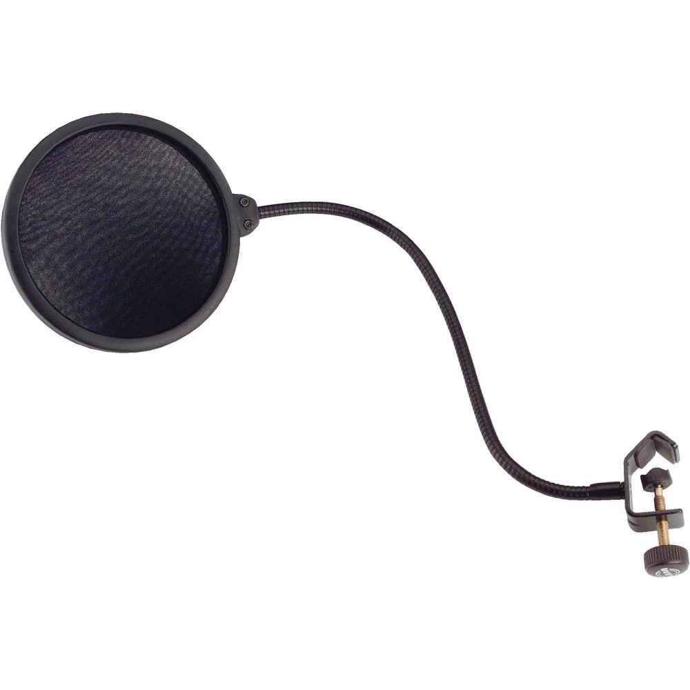 Može se pričvrstiti vijkom na sve standardne stative. Dvostruki najlonski zaslon. Praktičan savitljivi nosač. (U studiju) se postavlja ispred mikrofona za pjevanje i tako sprječava udarnu buku.