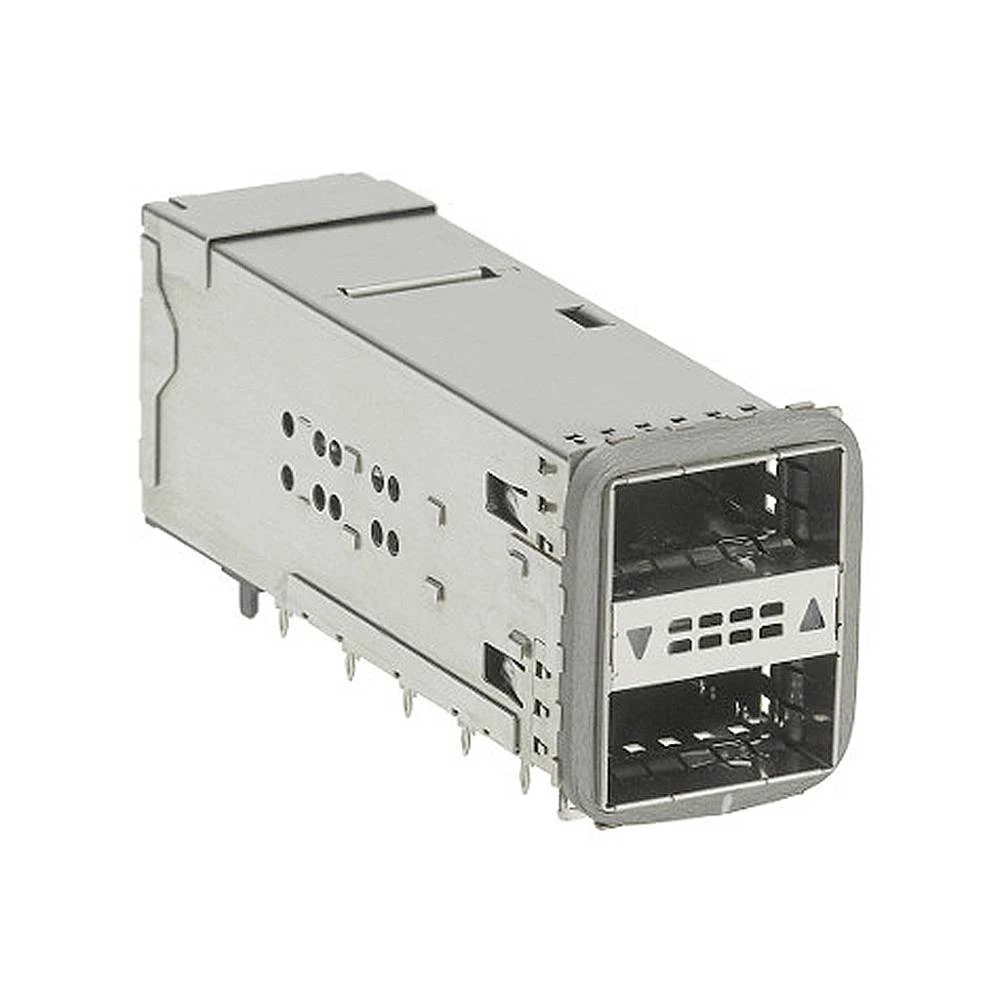 zQuad Small Form Factor Pluggable Plus (zQSFP+) Stacked Integrated 2-by-3 Connector and Cage with Elastomeric Gasket, Gold (Au) Over Nickel Plated, Down/Up Light Pipe