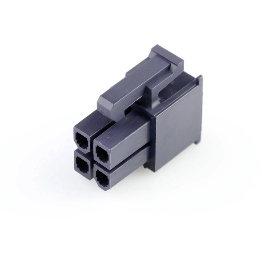 - Mini-Fit Jr. Receptacle Housing, Dual Row, 4 Circuits, UL 94V-2, Black