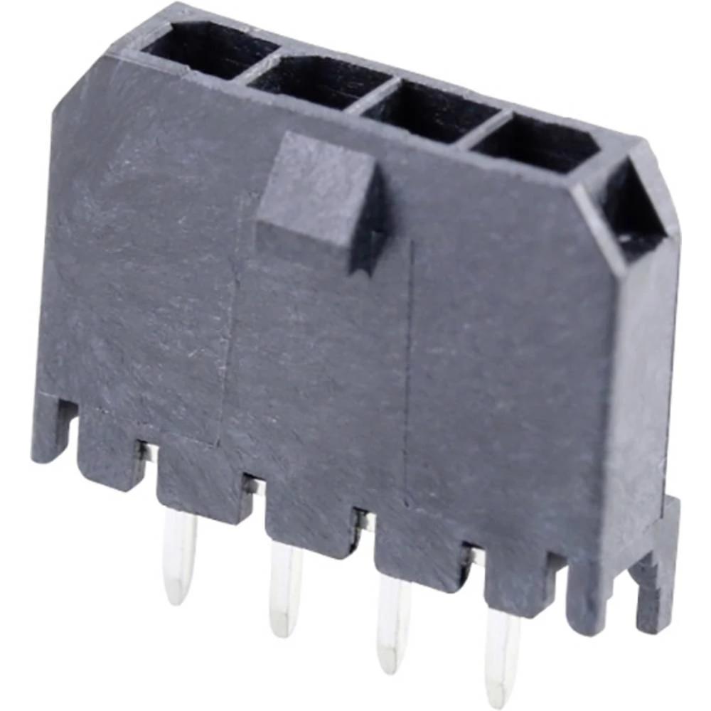 Molex 436500427 Micro-Fit 3.0 Vertical Header, 3.00mm Pitch, Single Row, 4 Circuits, with PCB Polarizing Peg, Tin, Glow-W