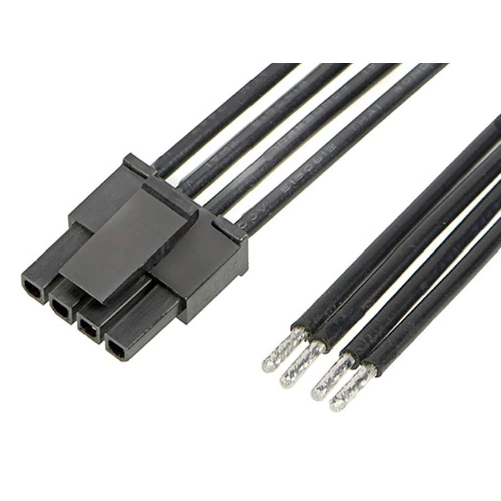 Micro-Fit 3.0 Female-to-Pigtail Off-the-Shelf (OTS) Cable Assembly, Single Row, 300.00mm Length, Gold (Au) Plating, 4 Circuits, Black