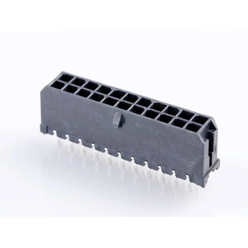 Micro-Fit 3.0 Vertical Header, 3.00mm Pitch, Dual Row, 22 Circuits, with PCB Polarizing Peg, Gold, Glow-Wire Capable, Black