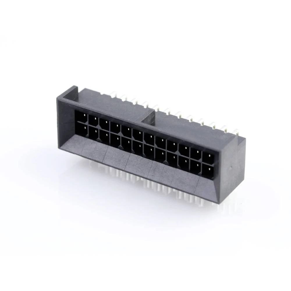 Micro-Fit BMI Header, Surface Mount Compatible, Dual Row, Right-Angle, with Snap-in Plastic Peg PCB Lock, 24 Circuits, 0.76µm Gold (Au) Selective Plating