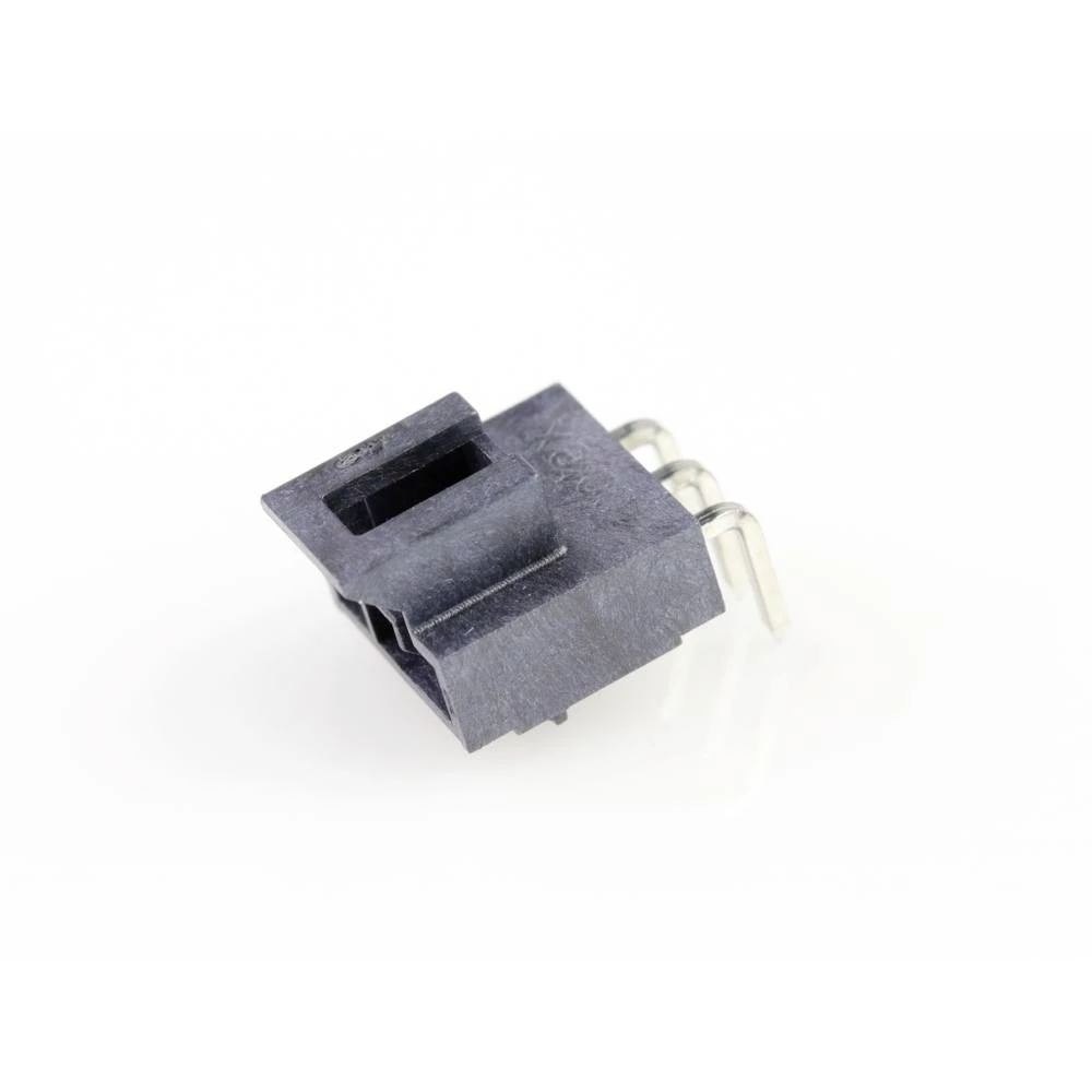 Nano-Fit Right-Angle Header, Through Hole, 2.50mm Pitch, Single Row, 3 Circuits, 0.38µm Gold (Au) Plating, Black, Glow-Wire Capable, Tray