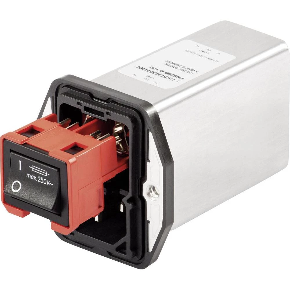 Mrežni filter, IEC priključak, prekidač, za medicinsku upotrebu 250 V/AC 1 A 10.9 mH (D X Š x V) 93 x 32 x 49.8 mm Schaffner FN 9290B-1-06 5 komada