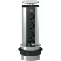 Sklopivi Deskbox s priključnim kabelom, za fiksnu ugradnju u stolnu ploču, montažni rukav od plastike, prikladno obojen u tonu poklopca. Montira se preko otvora (Ø102 mm) u vrh stola do maksimalne debljine 50 mm.