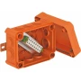 Razvodna kutija bez halogena s poklopcem otpornim na udarce i unaprijed sastavljena, meka utična brtvila, odobrena za održavanje električnih funkcija u skladu s DIN 4102, dio 12. Potpuno sastavljena spojna jedinica izrađena od visokotemperaturne posebne keramike i označenih zaštitnih vodiča. Isporučuje se s 2 sidrena protupožarna sidra MMS 6x50 za pričvršćivanje bez dizalica na vanjske nosače. Za podatkovne kablove s jezgrom Ø 0,8 mm. Moguće je do 6 krutih bakrenih žica (0,5 mm²) po terminalu. Razvodna kutija ima klasu otpornosti na udar IK09. Pojedinosti o vrstama kabela i proizvođačima mogu se naći u certifikatu općeg ispitivanja građevinskih inspekcija MPA NRW, Erwitte.