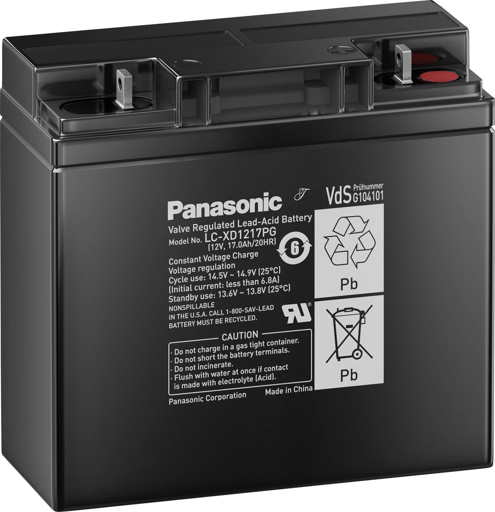Olovni akumulator 12 V 17 Ah Panasonic 12 V 17 Ah LC-XD1217APG olovno-koprenasti (AGM) (Š x V x D) 181 x 167 x 76 mm M5-vijčani priključak VDS-certifikat, bez održavanja