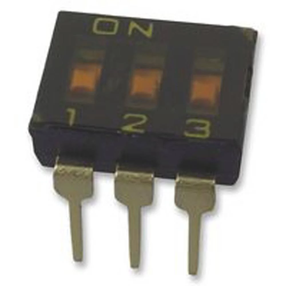 Slide Dip Switch, 3 Switches, 3PST, Latched, 0.025A, 24VDC, Solder Terminal, Through Hole-straight
