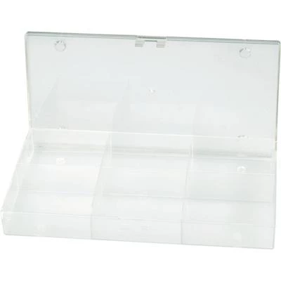 - Potpuno prozirna prigušena. 194 x 101 x 31 mm odjeljci 62 x 27 x 48 mm