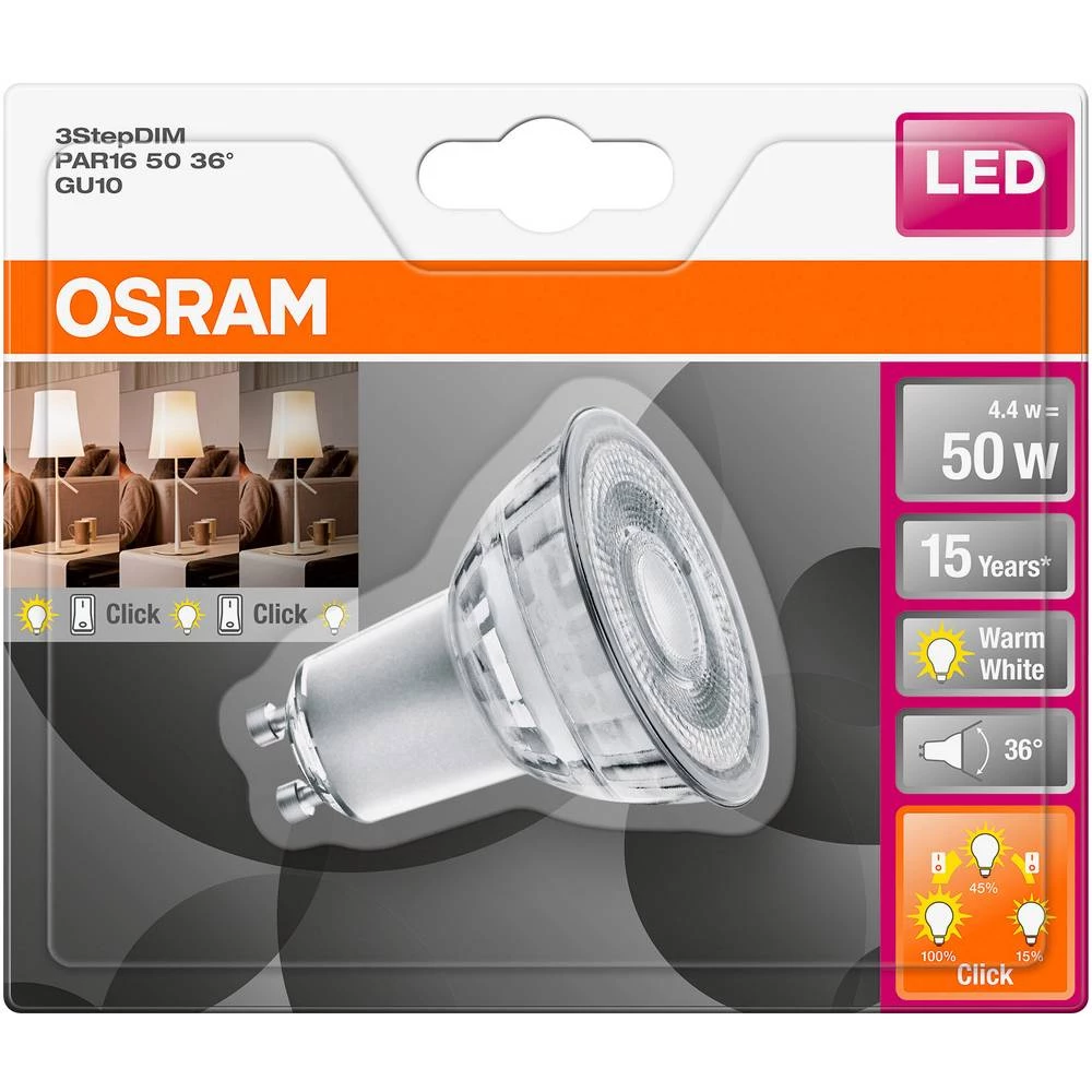 - OSRAM LED Star + Trostruki klik Dim, baza: GU10, zatamnjena u 3 razine, topla bijela, zamjenjuje konvencionalnu svjetiljku od 50 W, kut snopa 36 stupnjeva