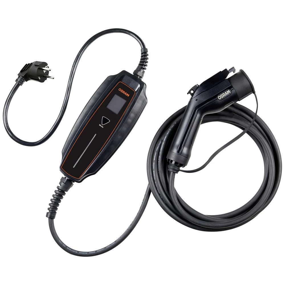 Otkrijte svijet električne vožnje s OSRAM-om. Punite svoje potpuno električno ili plug-in hibridno vozilo tipa 1 u pokretu ili kod kuće pomoću 2-pinske utičnice od 230 V. Kabel za punjenje ima ergonomske ručke za optimalno rukovanje i dugačak je 5 metara. Pogodan je za korištenje kod kuće ili u pokretu zahvaljujući IEC TR 60083 Schuko utikaču. Uz to, kabeli za punjenje opremljeni su kapicama za zaštitu od prašine i testirani na vodootpornost prema IP65 i otpornost na udarce prema IK10. Čak i kada su spojene, električne kontaktne točke zaštićene su od ulaska prašine i prskajuće vode u skladu s IP65 i IK10. Također dolazi s izdržljivom, kompaktnom torbicom za uredno pohranjivanje kabela nakon punjenja.