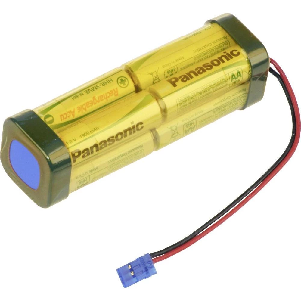Paket baterija na punjenje 8 Mignon (AA) kabel, utikač NiMH Panasonic dvostruka kocka F2x2x2 Graupner 9.6 V 1900 mAh