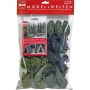 10 četinjača visine 75 do 135 mm i 10 listopadnih stabala visine 85 do 105 mm. S priborom za kolibu izrađenu od pravog drva.