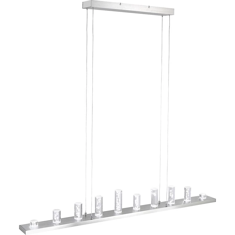 sa svojom svestranošću i inteligentnim Q® upravljanjem svjetlom. Svjetiljka izrađena od čelika isporučuje se s dvije trajno ugrađene LED žarulje od 12 vata koje sjaje prema dolje i s deset trajno ugrađenih 0,6 vati LED svjetiljki koje osvjetljavaju deset tijela akrilnog stakla. Zajedno, iluminatori emitiraju 2520 lumena i na raspolaganju vam je mogućnost da svjetlost svijetli u stvarno toploj bijeloj boji (3.000 Kelvina) ili u jednoj boji s više od 16 milijuna nijansi boja. Ovo se reguliranje vrši putem daljinskog upravljača Q®, koji je uključen u isporuku svake Q® žarulje. Pomoću Q® daljinskog upravljača mogu se upravljati pojedinačnim svjetlima i skupinama svjetala (do 20 pojedinačnih svjetala ili Q® žarulje s najviše 3 skupine), mijenjati u svjetlini i boji i spremiti. Stvorite atmosferu prema svom osobnom blagostanju. Sva Q® svjetla također se mogu integrirati u postojeće sustave pametnih kuća na temelju ZigBee radio standarda. Ako se na mostu kompatibilan sa ZigBee pruža dobavljač treće strane (npr. Philips nijansa, UBISYS G1 itd.), Svjetla se tada mogu upravljati putem pametnog telefona, tableta ili računala pomoću pridružene aplikacije. Međutim, dva izvora svjetlosti mogu se uključiti samo odvojeno. Različita dugačka staklena tijela reproduciraju obojenu svjetlost, a dolje svjetlost odaje prekrasnu, toplu bijelu svjetlost.