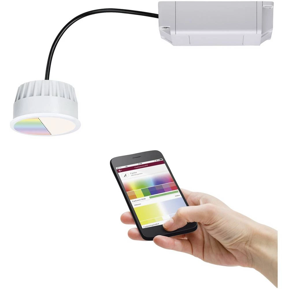 Želite li koristiti inovativne kovanice u kombinaciji sa vašom postojećom svjetlosnom instalacijom? Nema problema! Ako ste već instalirali ugradne reflektore za standardne svjetiljke promjera 51 mm, lako se možete prebaciti na super ravne i ekonomične LED module. Stara svjetiljka je uklonjena, RGBW kovanica spojena bez alata pomoću umetnutih stezaljki, umetnuto i to je to! Ovisno o vašem raspoloženju, možete birati između bijele dnevne svjetlosti, svjetla u boji i raznih efekata. Dioda u bijeloj boji (W) također pruža ugodno toplo bijelo svjetlo i čini miješanje bijelog tona od crvene, zelene i plave (RGB) boje suvišnim. Svjetiljka je kompatibilna sa Zigbee. Zigbee je protokol za radio prijenos koji umrežava uređaje različitih proizvođača. To omogućuje centralno upravljanje rasvjetom, u koju se, na primjer, mogu integrirati rolete, sustavi grijanja i alarma. Možete birati između rada putem Smart Friends Boxa, gateway-a istih standarda drugih proizvođača ili ručnog odašiljača Smart Home Zigbee. Pojedinačne komponente mogu se posebno obraćati ili mijenjati u skupine kao svjetlosne scene.
