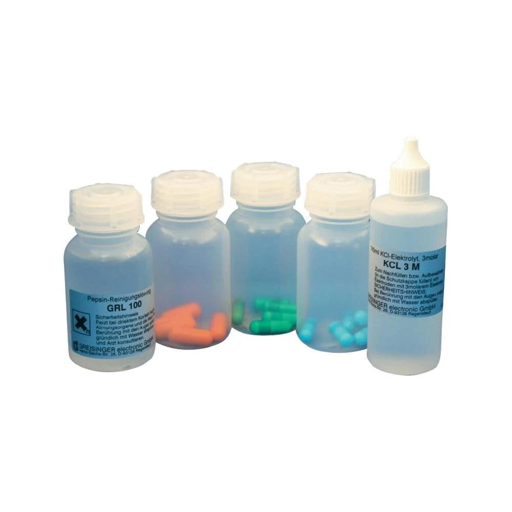 Praktičan komplet za rad i kalibraciju svih pH mjernih uređaja. Komplet se sastoji od različitih pH puferskih kaPS-la koje jednostavno možete otopiti u 100 ml destilirane vode. Zbog praškastog
