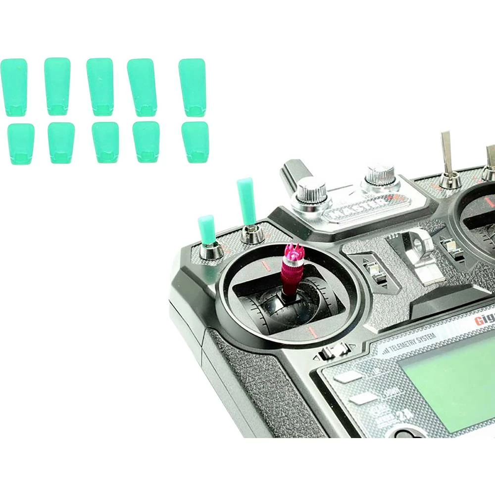 Svaki odašiljač na daljinsko upravljanje ima ove kromirane metalne prekidače. Nažalost, prekidači su glatki i svi izgledaju isto. Ne više. Od sada postoje dugmad u boji od silikonske gume u dugim i kratkim verzijama. To omogućuje siguran rad bez klizanja. Različite boje osiguravaju jednostavan rad.