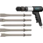 Primjena: Uklanjanje panela karoserije sa stlačenim zrakom i za uporabu u industriji Komplet čekića 6-dijelni. Potrebna količina zraka: 57 - 594 l / min. Razina zvučnog tlaka: 92 - 105 dB (A) Lp A. Broj otkucaja podesivih u 9 koraka do 2600 otkucaja / min. Držač dlijeta: unutarnji šesterokut 10 mm. Dužina osovine: 73 mm. Plastični slučaj. Hladno izolirajuća drška. Ulaz za zrak (iz kompresora): unutarnji navoj (IG) 12,91 mm (1/4 "). Čep spojke: Nazivni promjer 7.2 (uključeno) Radni tlak (bar): 6.3 Neto težina (kg): 2,5 kg. Broj alata: 6.