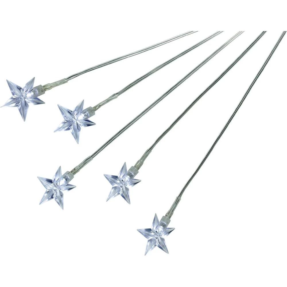 Dieses LED Sternenstäbe-Set besteht aus 5 Stäben mit jeweils 5 Kalt-Weißen LEDs. Die 5 Stäbe haben einen Abstand von 50 cm.