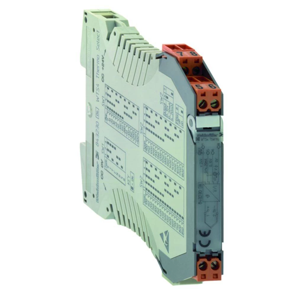 Signal pretvarač / terminator je. WAVESERIES, pretvornik / izolator signala. Konfigurabilni TC konverter WTS4 / WTZ4 THERMO s vanjskim napajanjem širine 12,5 mm za detekciju, linearizaciju i pretvorbu termoelektričnih napona u standardizirane DC strujne i naponske signale. Na ulaznoj strani mogu se spojiti termoelementi prema IEC584 tipu K, J, T, E, N, R, S i B. Parametri ulaznih i izlaznih signala, kao što su tip termokopa, temperaturni raspon i izlazni standardni signali, mogu se slobodno konfigurirati putem DIP-sklopki. Ulazni i izlazni krugovi nisu galvanski izolirani. Napajanje od 24 V DC preko izlaza. WTS4 / WT / 4 THERMO dostupni su s vijčanim ili opružnim kutnim priključkom. Preko ZQV2.5 N križnih priključaka, napon napajanja od 24 VDC može se premostiti na strani modula.