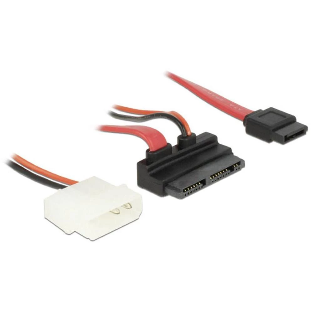 Priključni kabel za tvrdi disk [1x SATA-kombinirani-utikač 7+15pol. - 1x SATA-utičnica 7pol., IDE-strujni-utikač 4pol.] 0.30 m crvene boje Delock