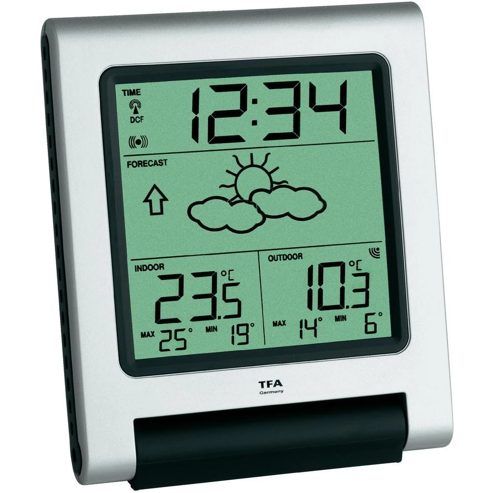| Funkcija (vremenske stanice) | Unutarnja temperatura, Radio sat (DCF77), Vanjska temperatura, Maks. 1 senzor, Tendencija prikaz |