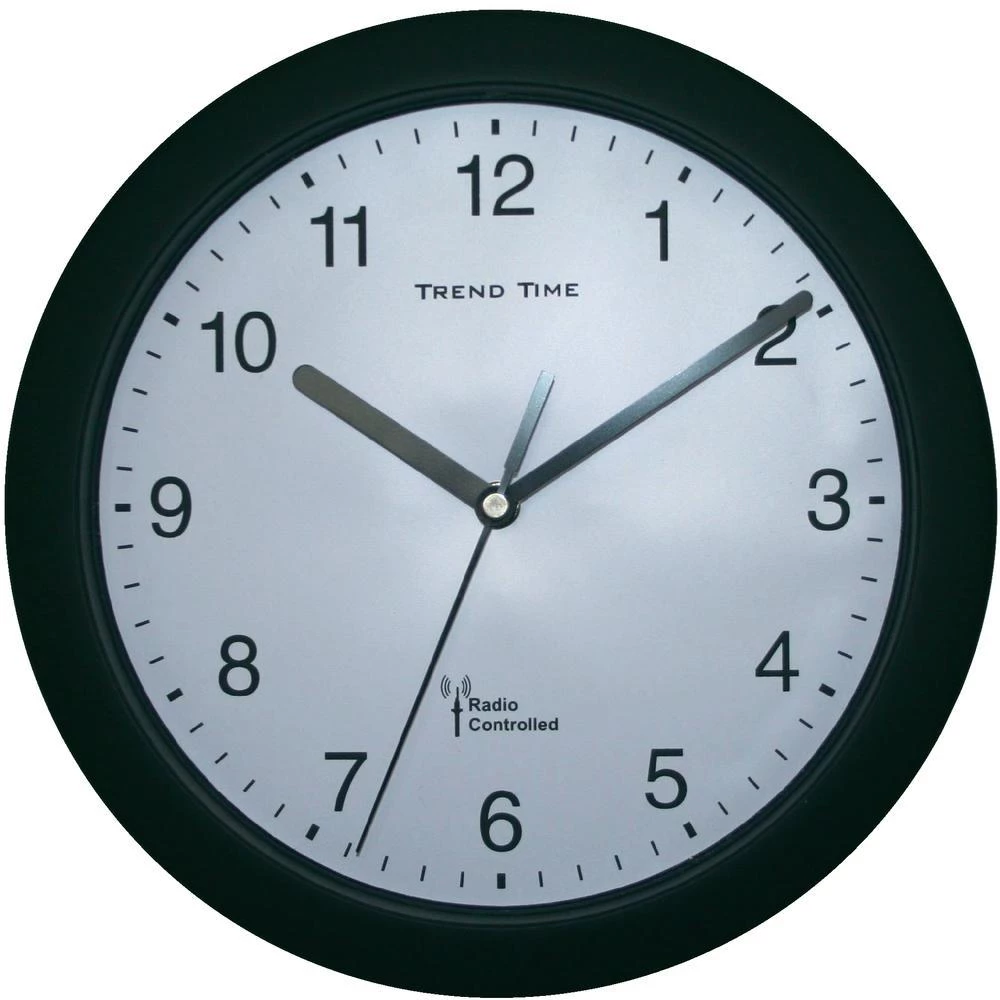 Radijski kontrolirani zidni sat, analogni 25 cm (promjer x D) 25 cm x 3.8 cm crne boje