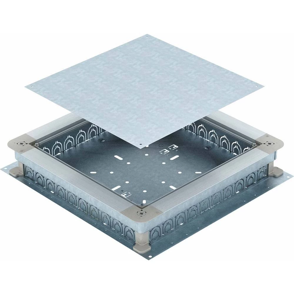 Podni spoj i razvodna kutija za instalacijske sustave podnih obloga sa estrihom s unutarnjim, neprekidnim podešavanjem visine od 70 do 125 mm. Nakon postavljanja estriha, podna kutija se odvaja. Metalni bočni zidovi s prefabrikovanim ulaznim otvorima za cjevovode. S zaštitnim poklopcem za ugradnju.