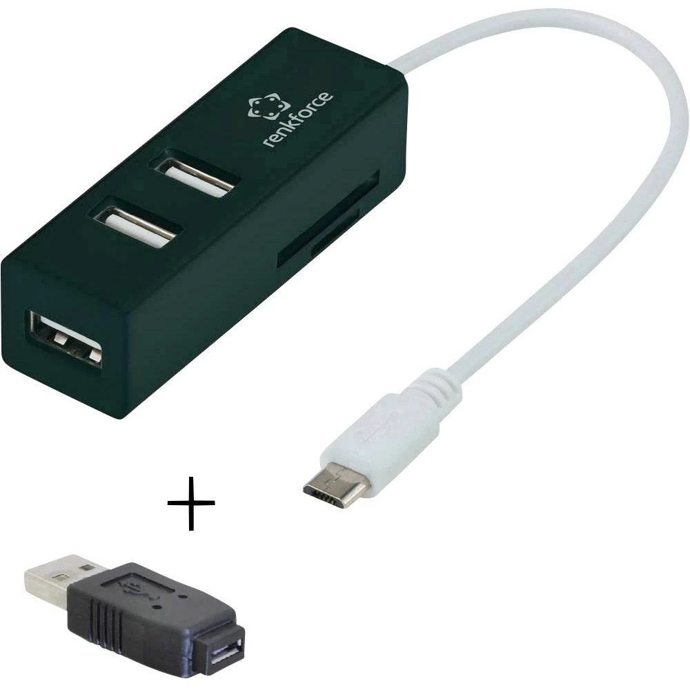 Renkforce 3 Port USB 2.0 OTG čvorište s čitačem SD kartice + mikro-B na USB-A adapter