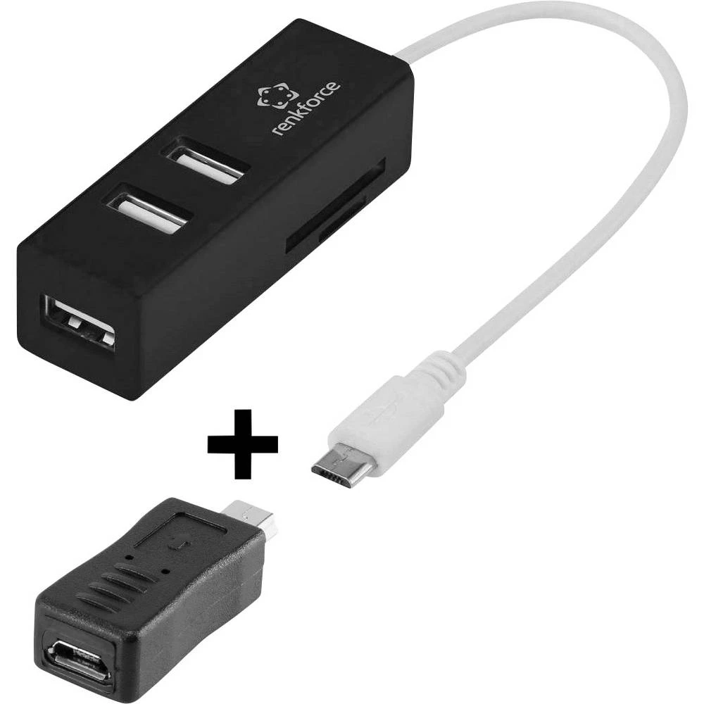 Renkforce 3 portni USB 2.0 OTG-Hub sa SD-čitačem kartica + micro-B-USB na mini-USB adapter