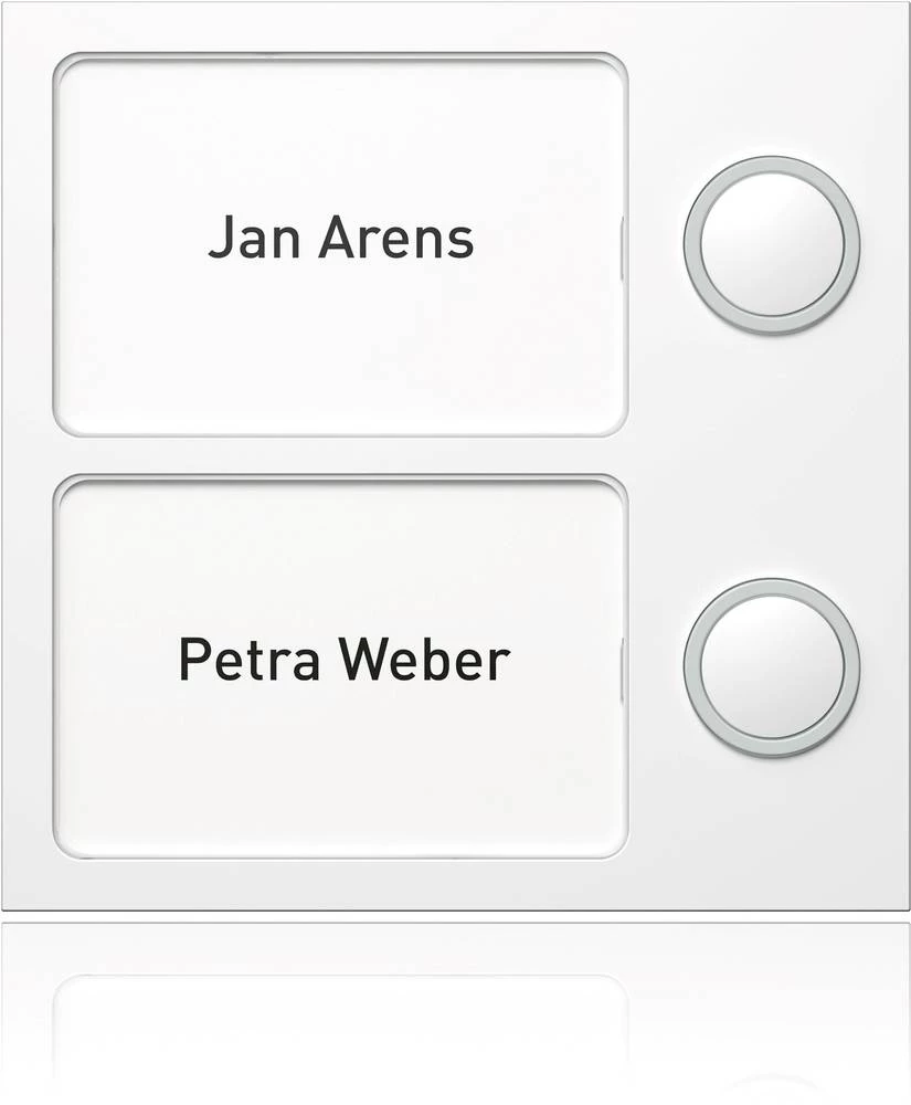 Modul gumba TwinBus, 2 gumba za zvono RAL. Serija proizvoda: TwinBus Portier - Vrsta proizvoda ili komponente: modul s tipkama - Posebna aplikacija: za adresiranje 2 gumba za zvono - Tipka za pozivanje: 2 gumba - Boja: prilagodljiva - Vrsta ploča: 2 osvijetljene značke.