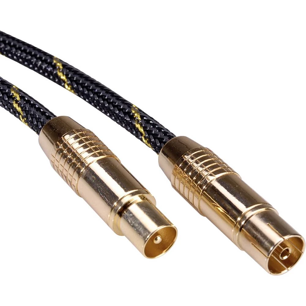Roline antene, SAT priključni kabel [1x kaoksialni utikač - 1x kaoksialni ženski konektor] crna/zlatna