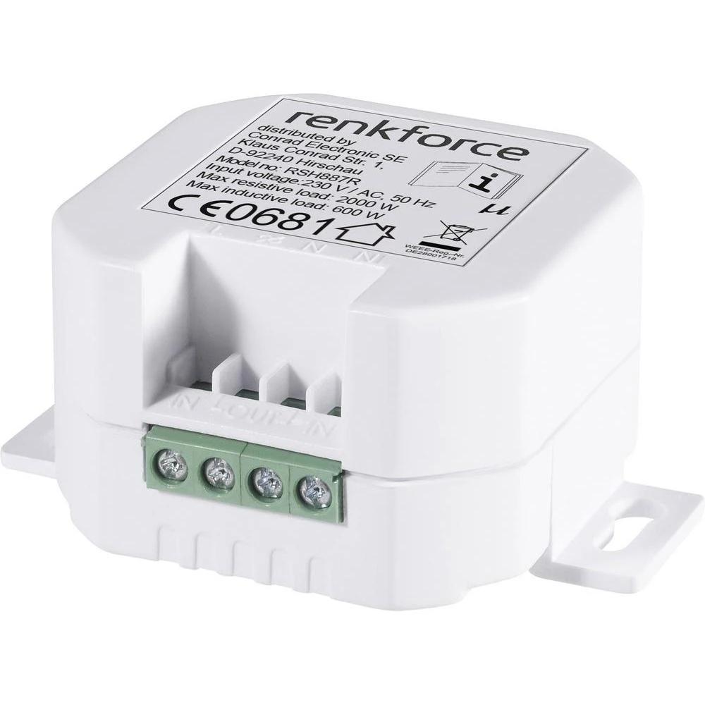 RS2W bežični prekidač, podžbukni 1-kanalni, rasklopna snaga (maks.) 2000 W domet maks. (na otvorenom) 150 m