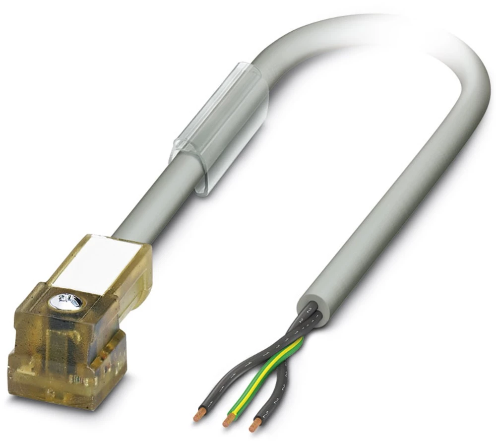 Sensor/Actuator cable, 3-position, PUR/PVC, Gray RAL 7001, Free cable end, on C valve plug (8 mm), with 1 LED, connected with Z diode, Cable length: 3 m