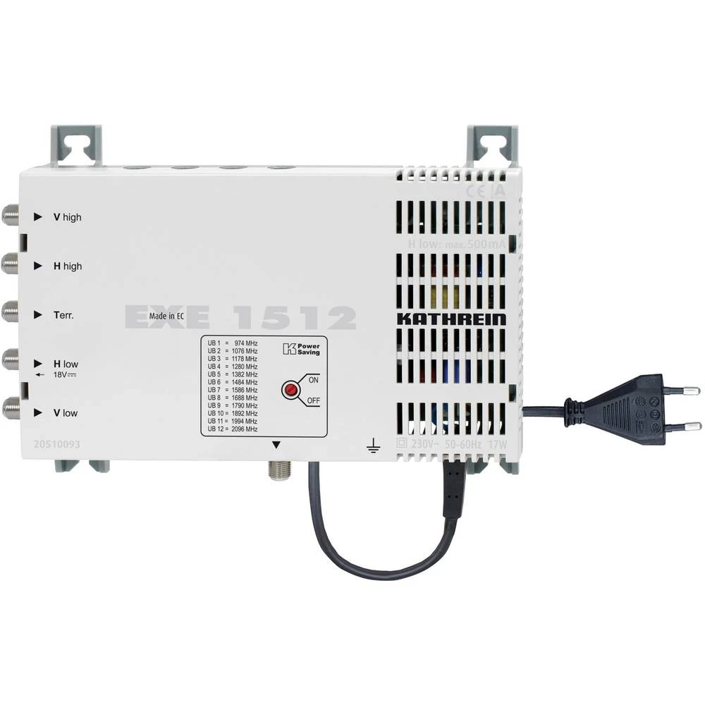 Satelitski multiprekidač kaskadni unicable Kathrein EXE 1512 Ulazi: 5 (4 Sat/1 zemaljske) Broj sudionika: 12
