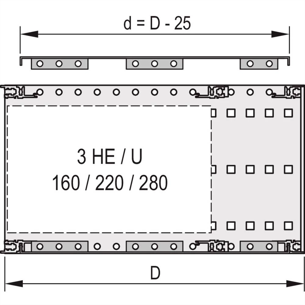 Poklopna ploča za ugradnju ploča s električnim krugovima dubine 160 mm, 220 mm ili 280 mm