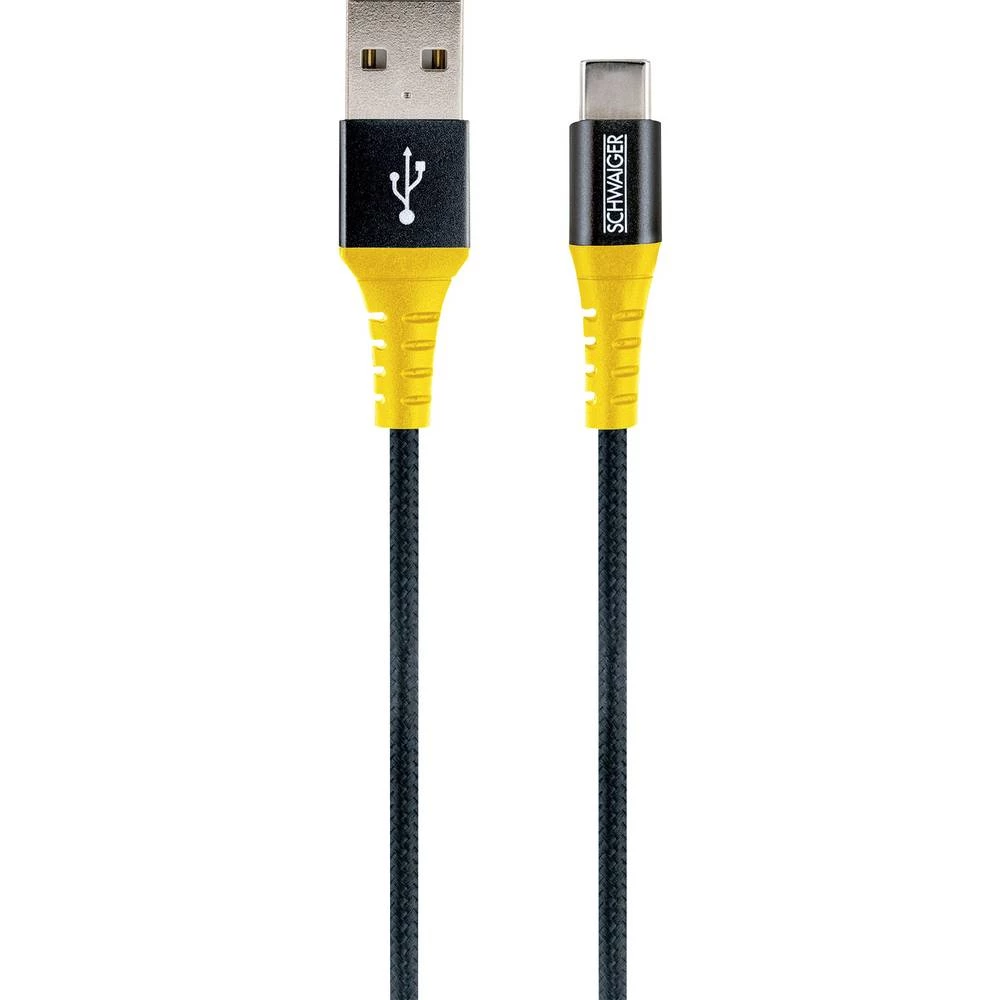 Schwaiger USB 2.0 priključni kabel [1x muški konektor USB 2.0 tipa a - 1x USB 3.1 muški konektor ac] 1.20 m crna, žuta odporan n